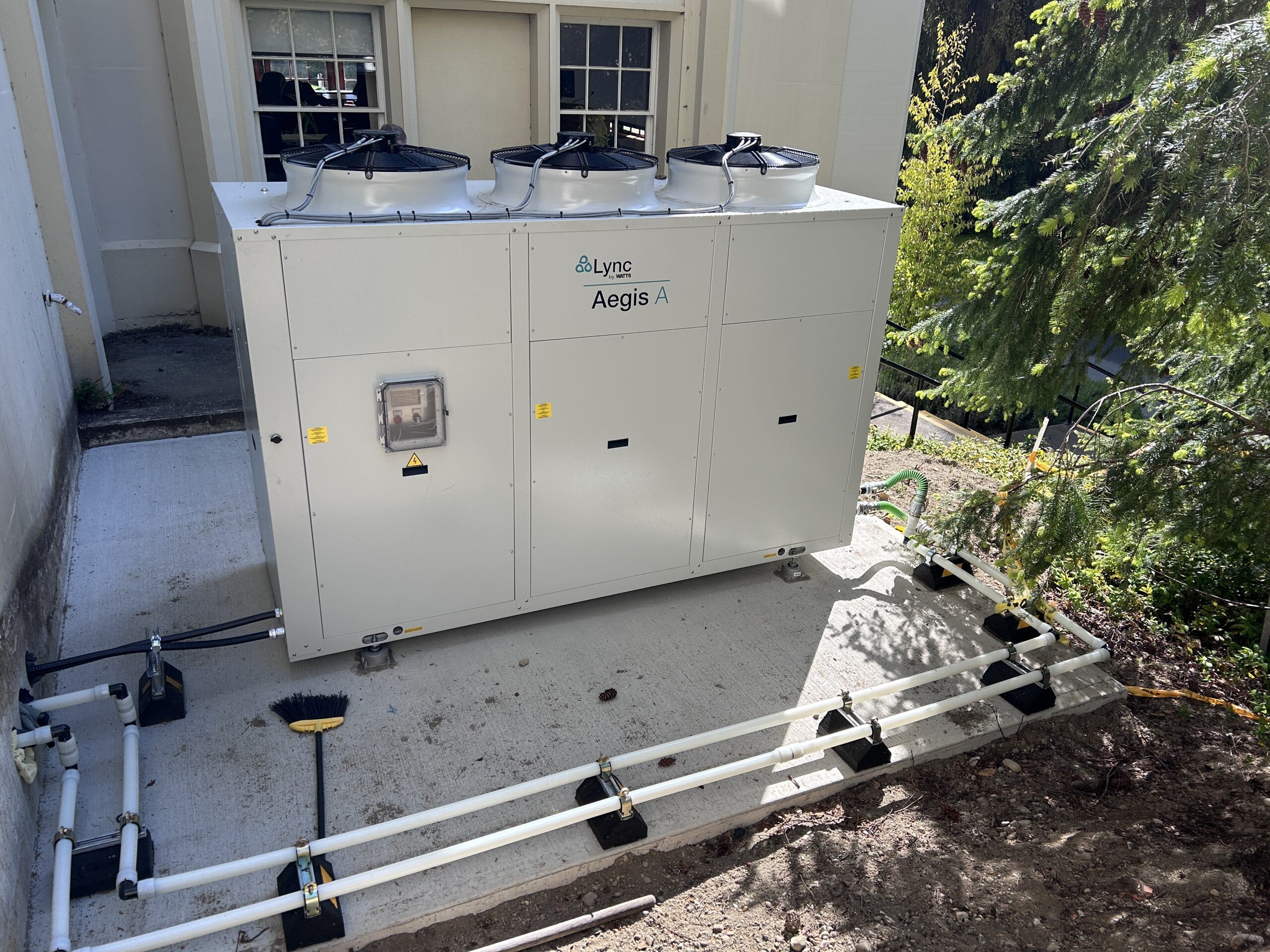 Royal Roads University in Colwood, BC, recently decarbonized its Nixon Student Housing building by replacing natural gas-fired domestic hot water boilers with a Lync Aegis CO₂ heat pump system. This upgrade supports the university’s campus-wide climate action goals and provides reliable hot water for residents.